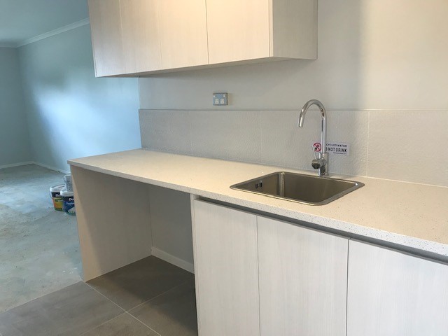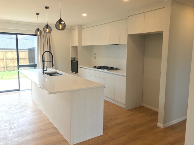 The generous living area is open plan to the kitchen. This includes quality stainless steel appliances and an engineered stone bench top.
