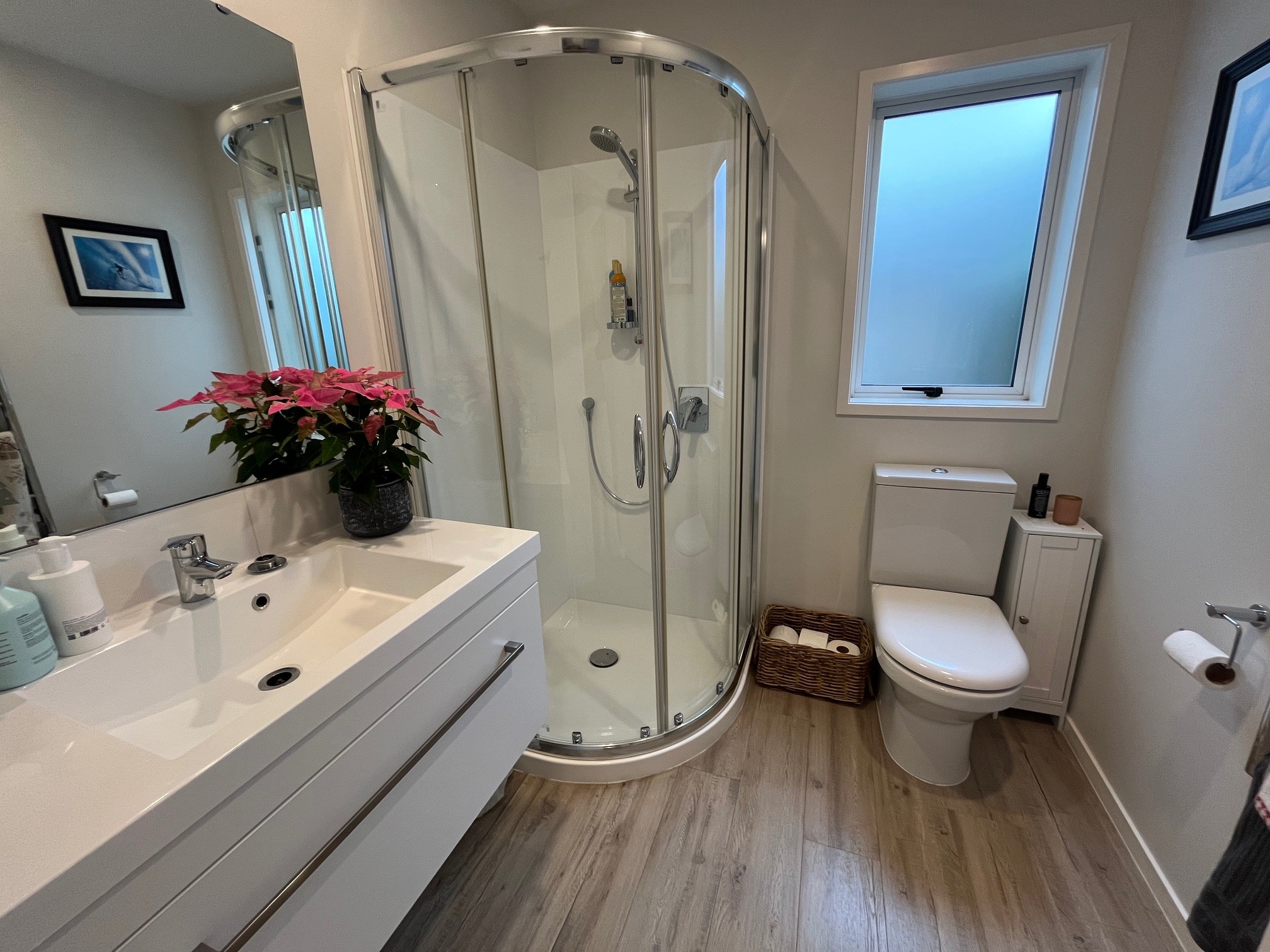 The ground floor has a lovely, open plan, modern kitchen with dining area and lounge. From here you can access the beautiful, colour filled garden.