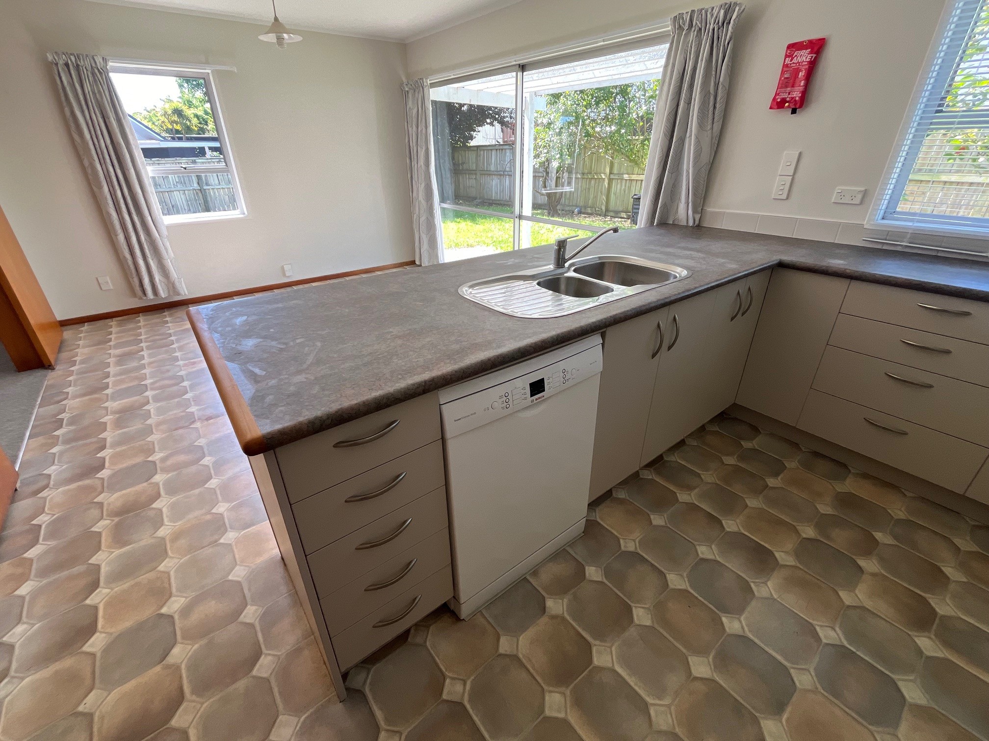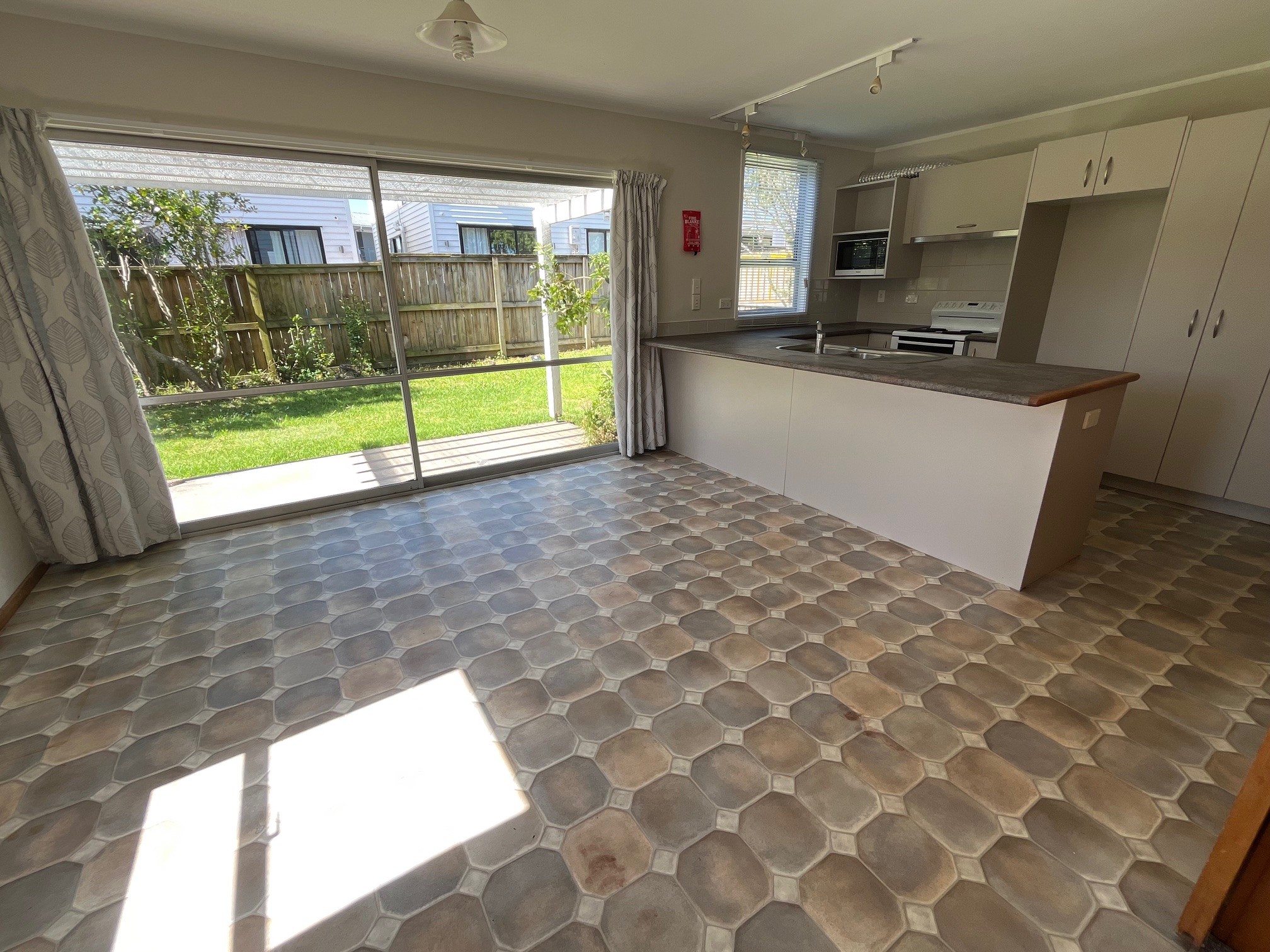 There is a large dining/kitchen and a separate lounge. From each area you have access to the fully fenced, lawned garden.