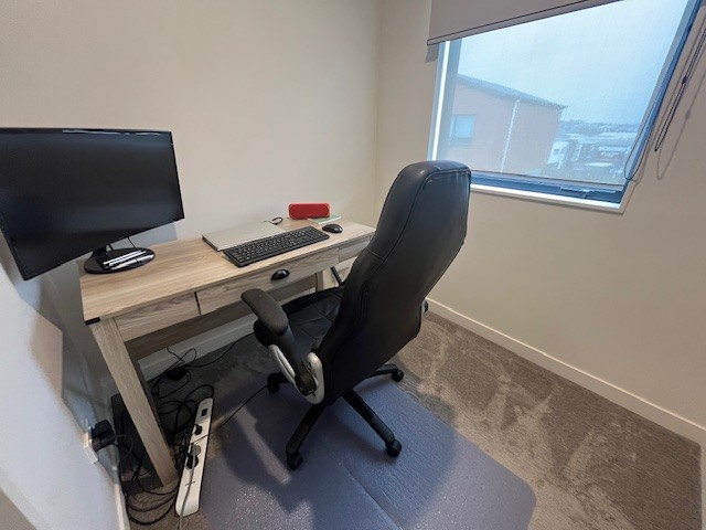 Upstairs there are two generous double bedrooms (each with double wardrobes and master with heat pump), a separate study and the main bathroom.